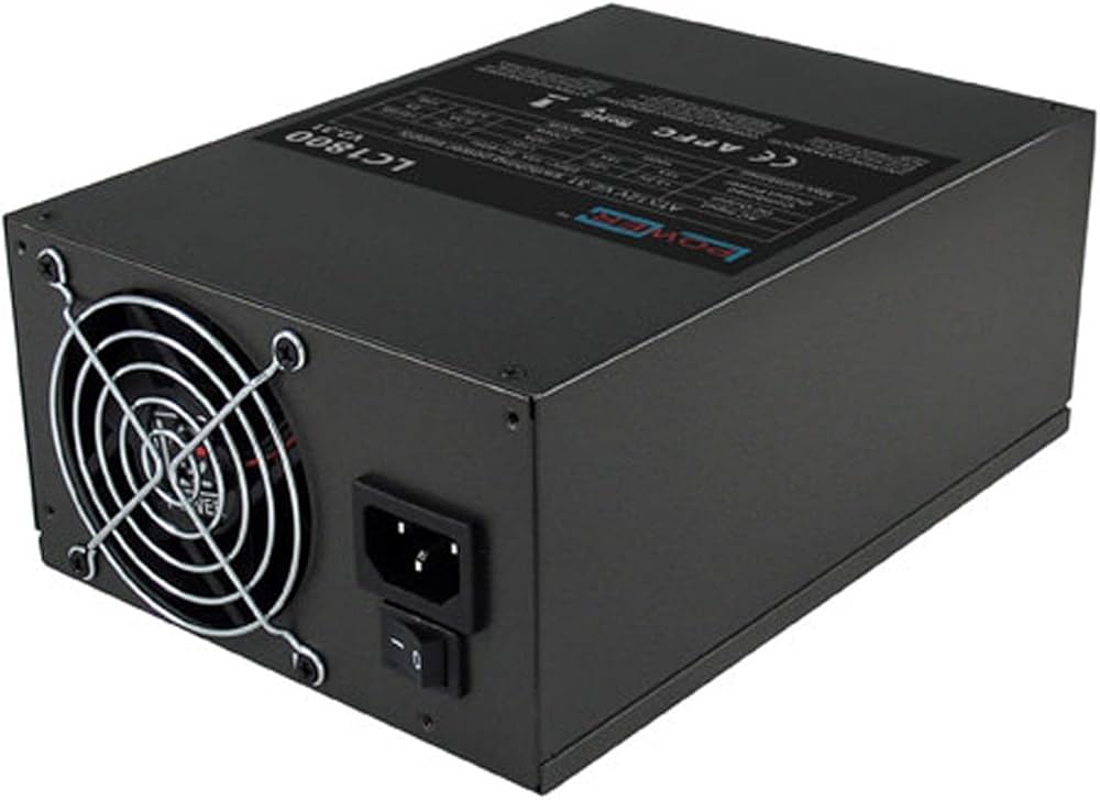 Fonte de alimentação LC-Power LC1800 1800W V2.31, projetada para sistemas de mineração de criptomoedas ou rigs com múltiplas placas de vídeo. Garantia de fornecimento estável de energia mesmo sob cargas intensas, com alta eficiência e segurança elétrica.